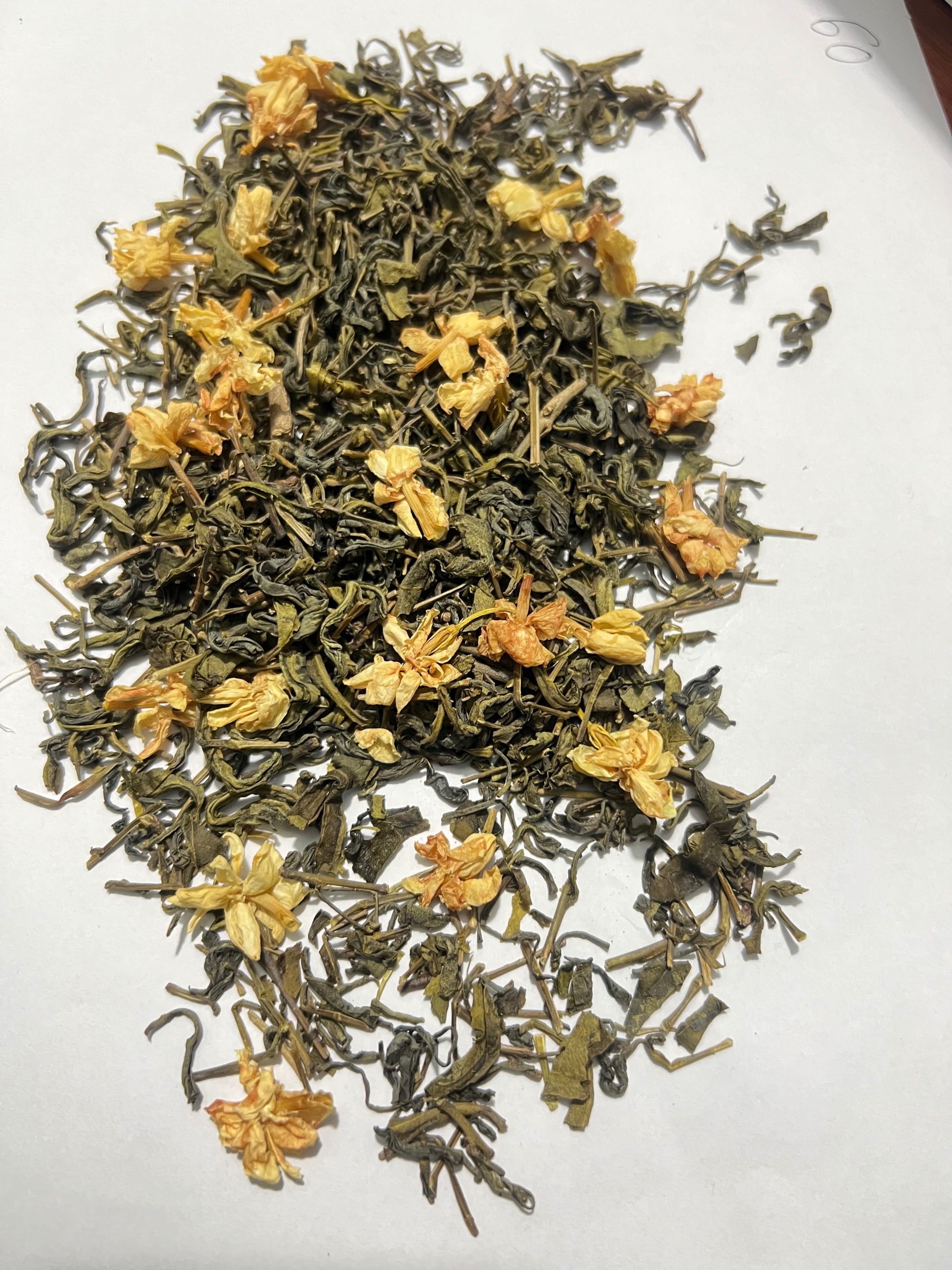 Trà mix hoa nhài được phối trộn từ trà xanh nguyên liệu chọn lọc và hoa nhài khô tự nhiên, hương thơm dịu nhẹ, vị trà hài hòa – rất phù hợp để ướp hương, phối trộn hoặc sản xuất trà thành phẩm.